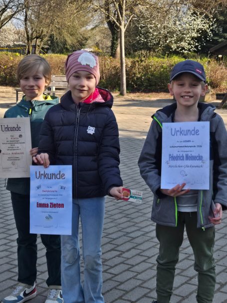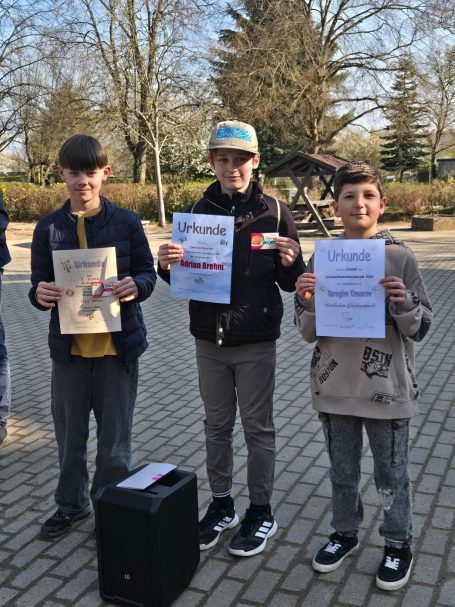 Bei frühlingshaftem Wetter haben wir heute, im Rahmen der Schülervollversammlung, die diesjährigen Teilnehmer/Preisträger des Lesewettbewerbs, der Schulmathematikolympiade sowie der zurückliegenden Sportwettkämpfe gebührend gewürdigt.